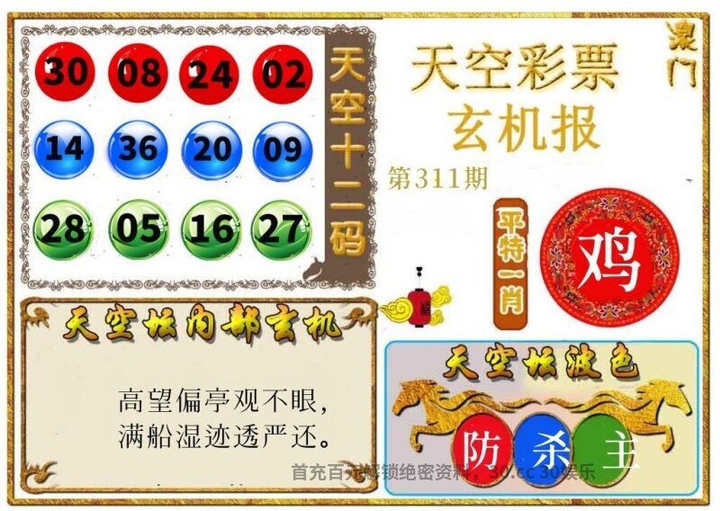 | 315期:天空彩票玄机报 解五肖:猪马猴鸡虎 |